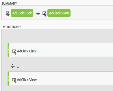 calculated metric with "clicked" (visits) / "view" (visits)