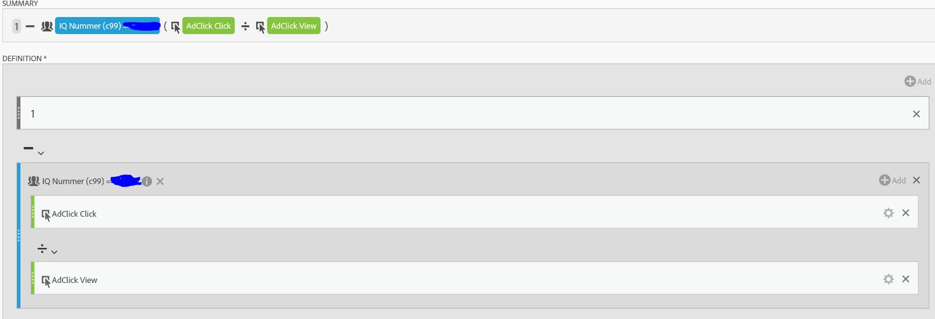 so this is what the metric should look like for this example (for the dimension "IQ Nummer") if i want to get view but not click?