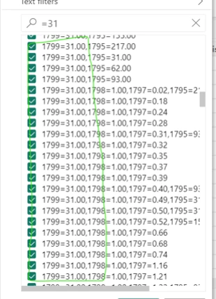 2. What does ".00" in 1799 = 31.00 stand for?