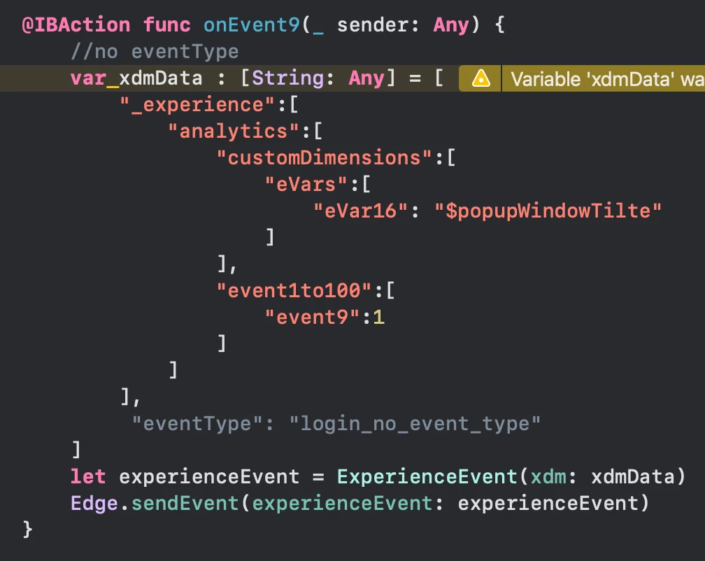 I have a question about how to send the eVars and events in my application. While I've successfully been receiving the eVars in Adobe Analytics, I haven't been able to track any success events in AA. Please refer to the attached screenshot of my current configuration for reference.