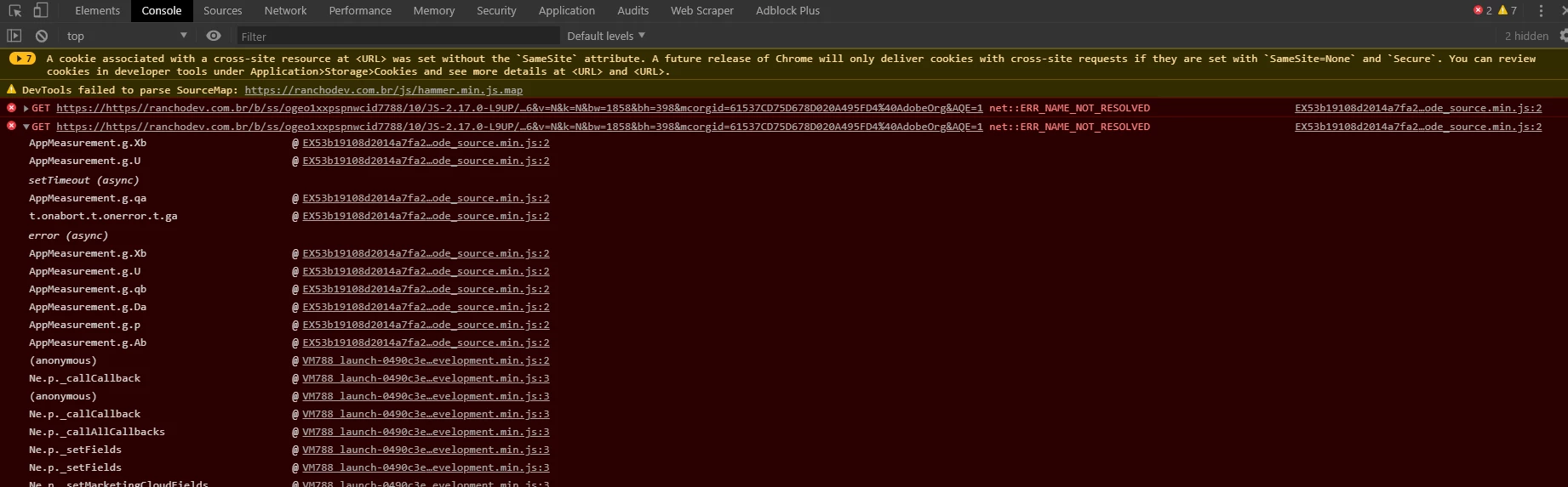 When I open the console tab it shows this error