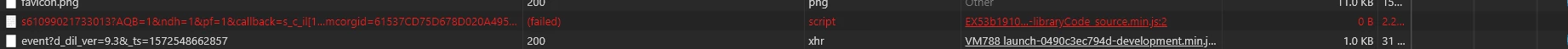 At the Network tab the event shows this failed status