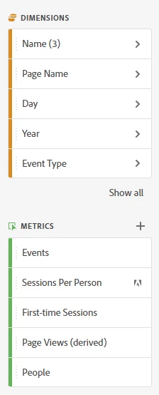- As a novice user, help them to combine the right dimensions and metrics by showing that they come from the same context (in the example above: "combine the value metric with the id dimension")