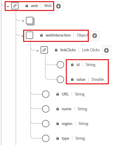 While this makes sense in Core Analytics, where components have no inherent relation to each other, components in Customer Journey Analytics come from the XDM Schema, where fields are always contextual to the Schema. For example, the standard Web SDK Field Group positions the ID and Click number of Link Clicks at "Web > Web interaction > Link Clicks > ID/Value":