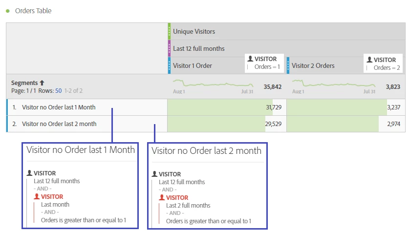 Has not purchased in last 30 days Has not purchased in last 60 days
