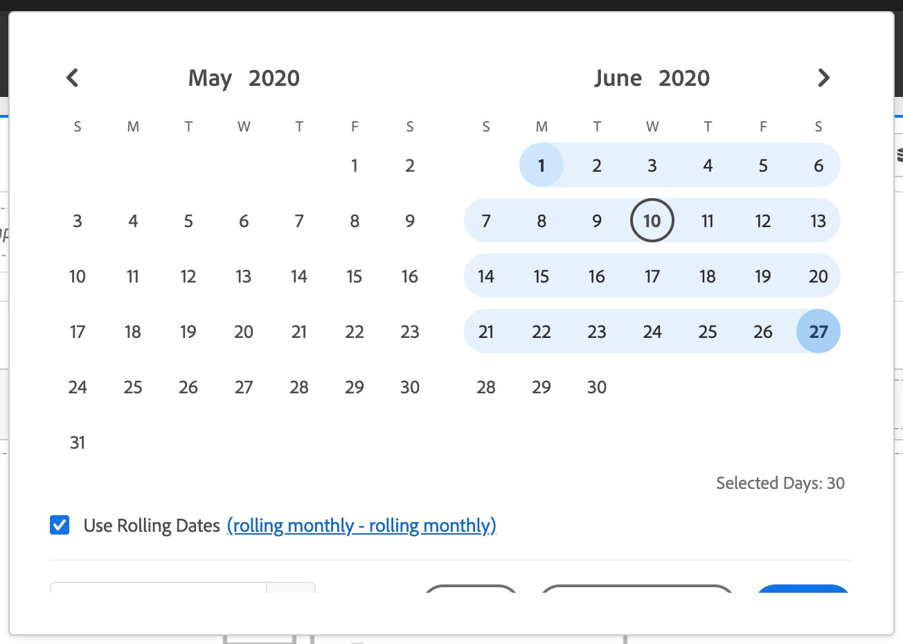 The UI for the date selector in Analysis Workspace has changed to result in more whitespace. On smaller screens, that means a lot of scrolling is needed when toggling the rolling date ranges.