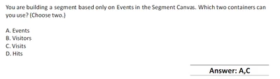 The one thing I noticed was that the segment has to be created for events alone and what two segment containers could be used for that.
