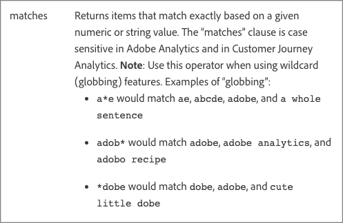 I was wondering if it were possible to use regex for adobe segments - I saw a response from a few years ago saying there wasn't currently functionality for this. Was just wondering if this was possible to a greater extent now.