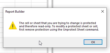 Report Builder Error - Cell or Sheet is protected