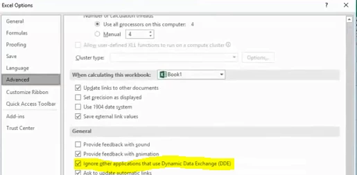 Have got the same issue OLE error, In one case we are able to fix this with disabling DDE from Excel Options  and restart the machine