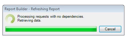 Issue: Report Builder - Refreshing Report dialogue box stays open after reports are properly refreshed which leads to end-user confusion.