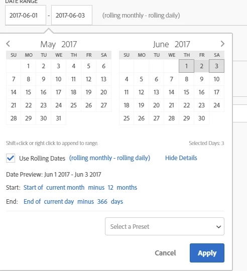 I may be missing it but I would like to show a rolling monthly view of revenue by day. Selecting "This Month" and then selecting "Add Time Period Column" > "This Month Last Year to This Date Range" applies the appropriate LY range. However when I then change the TY range to "Last Month" the secondary LY month does not change to the same range for LY. Has anyone figured out a way to run a rolling month vs LY report in workspace? Thanks!