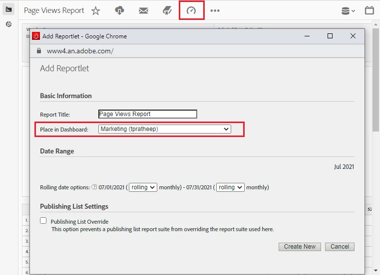 I have created a report for pageviews by month and if i would like to see that report by each month in dashboard i mean like same report repeated for 12 months in a dashboard how do i do that? do i have to create pageview report for each month and place it in dashboard or is there a better way to use same report placing in all panels in dashboard and just changing the date?