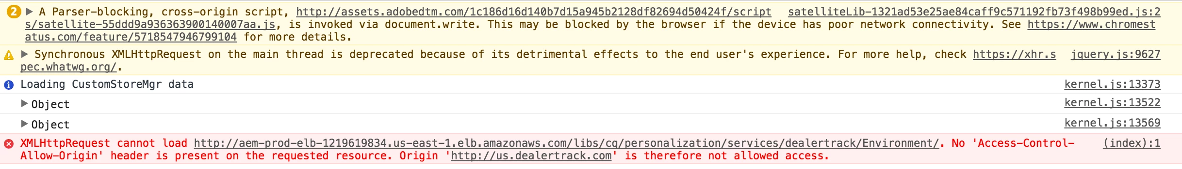 The first error isn't an error but a warning and is related to changes Google are making in Chrome to deprecate document.write calls. At present it shouldn't cause an issue unless a visitor visits your website on a slow connection mobile device but likely will impact more as Google further their plans to stop document.write usage. More information from Adobe on this is available from: https://marketing.adobe.com/resources/help/en_US/dtm/c_chrome_2G.html