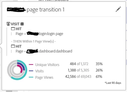 segment and calculated metrics: count transition form page A to B