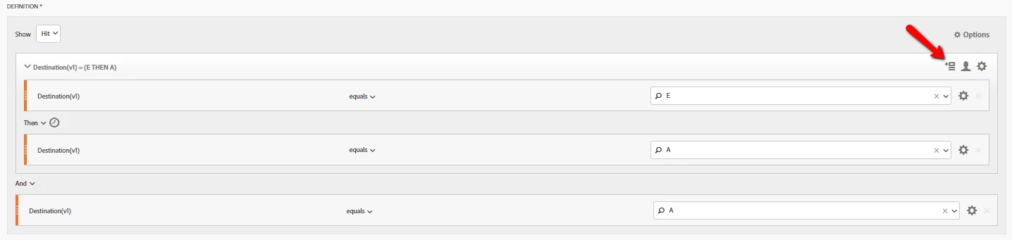 • When trying to match the logic you suggested, it seems that I can ONLY do very simple "then" and "and/or" after setting up the first section. Otherwise when I try to create a new container or drop in a new "Destination(v1)", the new then/and/or statement I adjust will make adjustments to the prior logic.