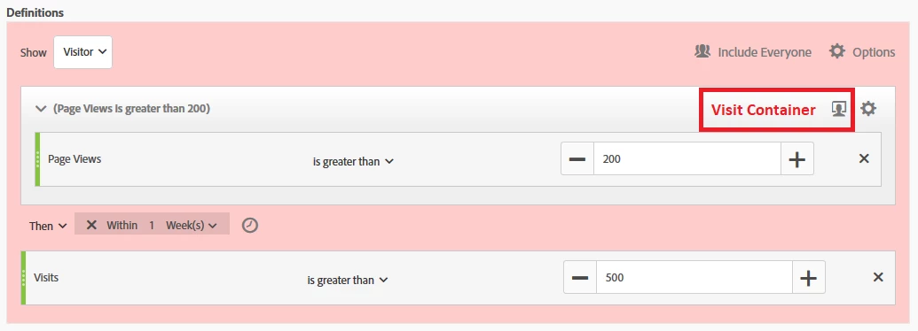 - Exclude visitors where they have generated over 500 visits within one week