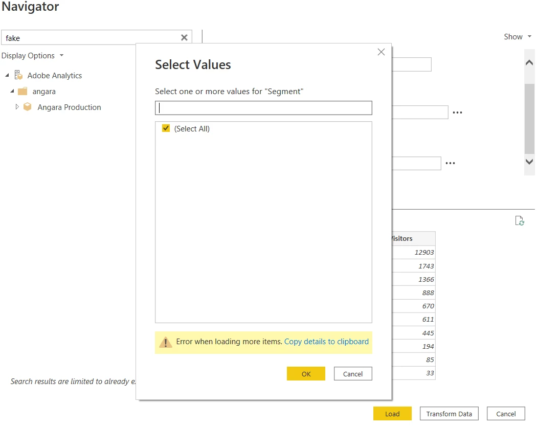 I am trying to load data from adobe analytics in power bi using adobe analytics connector in power bi.