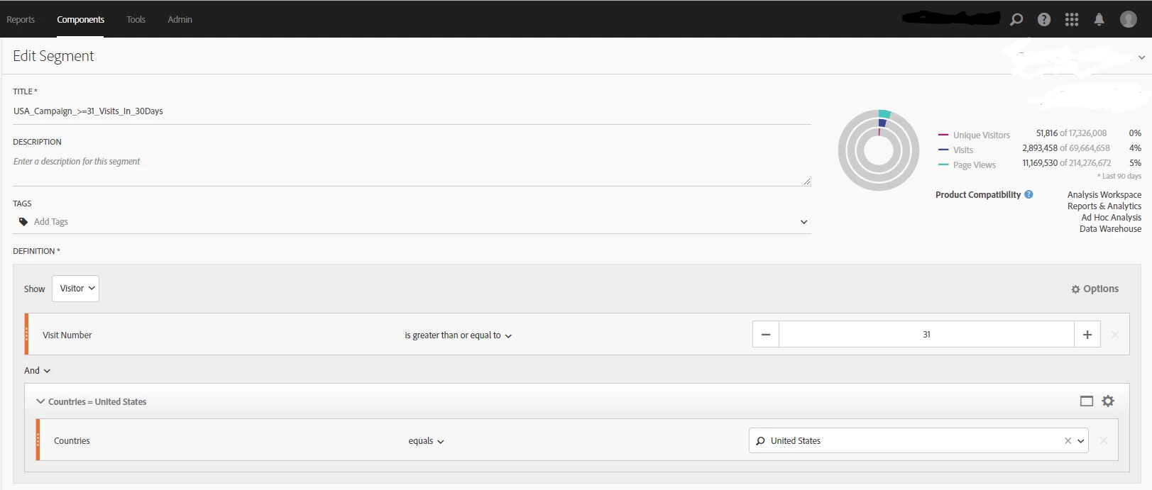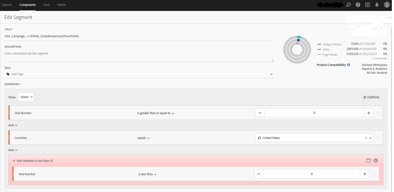 This was the case for both segments in Workspace i.e. The 1-30 Visits segment also returned results of people with over 30 visits in 30 days, which is not correct.