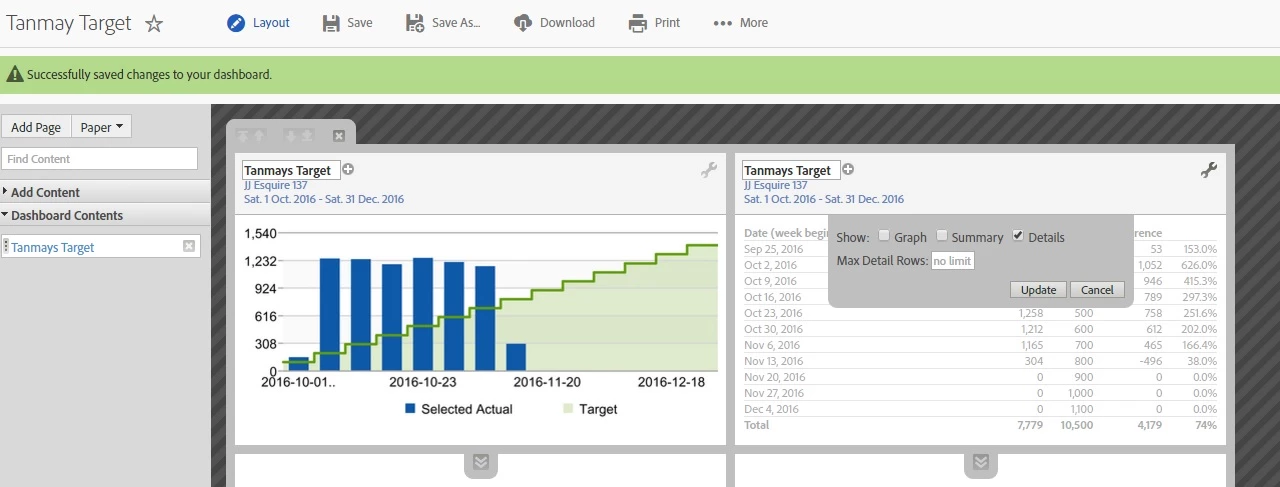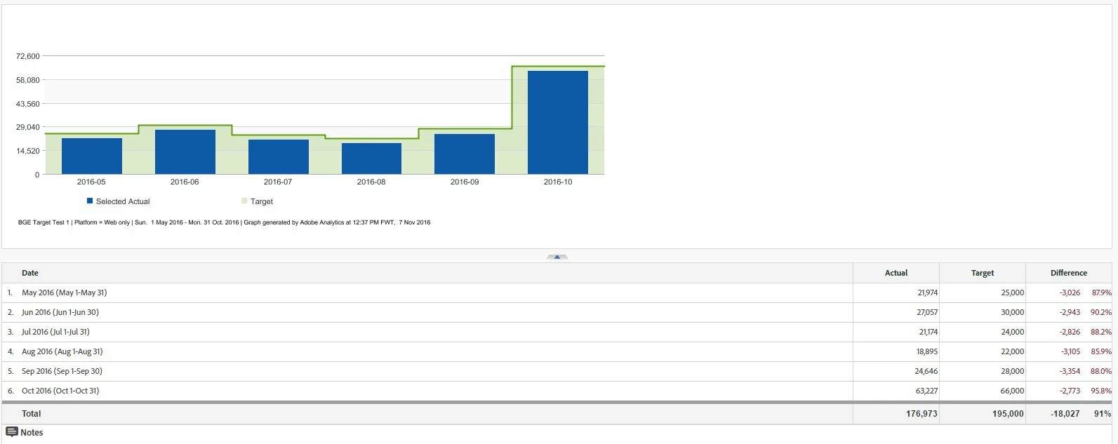 2. I set the required "Targets" which then provide me with the attached report