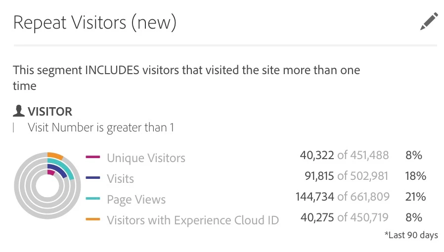PS: I've tried following the steps on AA's documentation: Compare new visitors to return visitors and I got the exact same results! No need for a screenshot here as, again, it's the exact same thing happening.