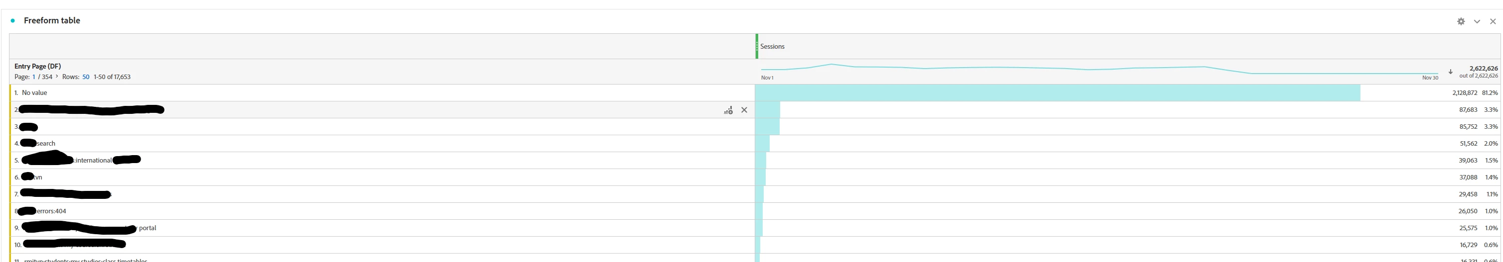 I am getting alot of No Value, which doesn't make sense. Every website visit has an entry page.
