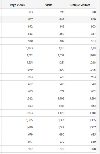 "Site Metrics->Key Metrics" showing almost the same in "Page Views", "Visits" and "Unique Visitors"