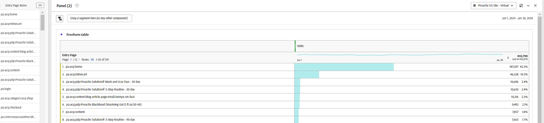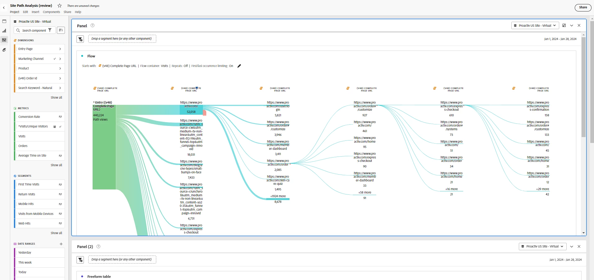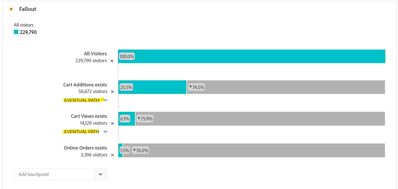 - Based on the second screenshot, out of 442k visits to the website 187k landed on the homepage, i want to see how users navigate from that homepage into the buyflow.
