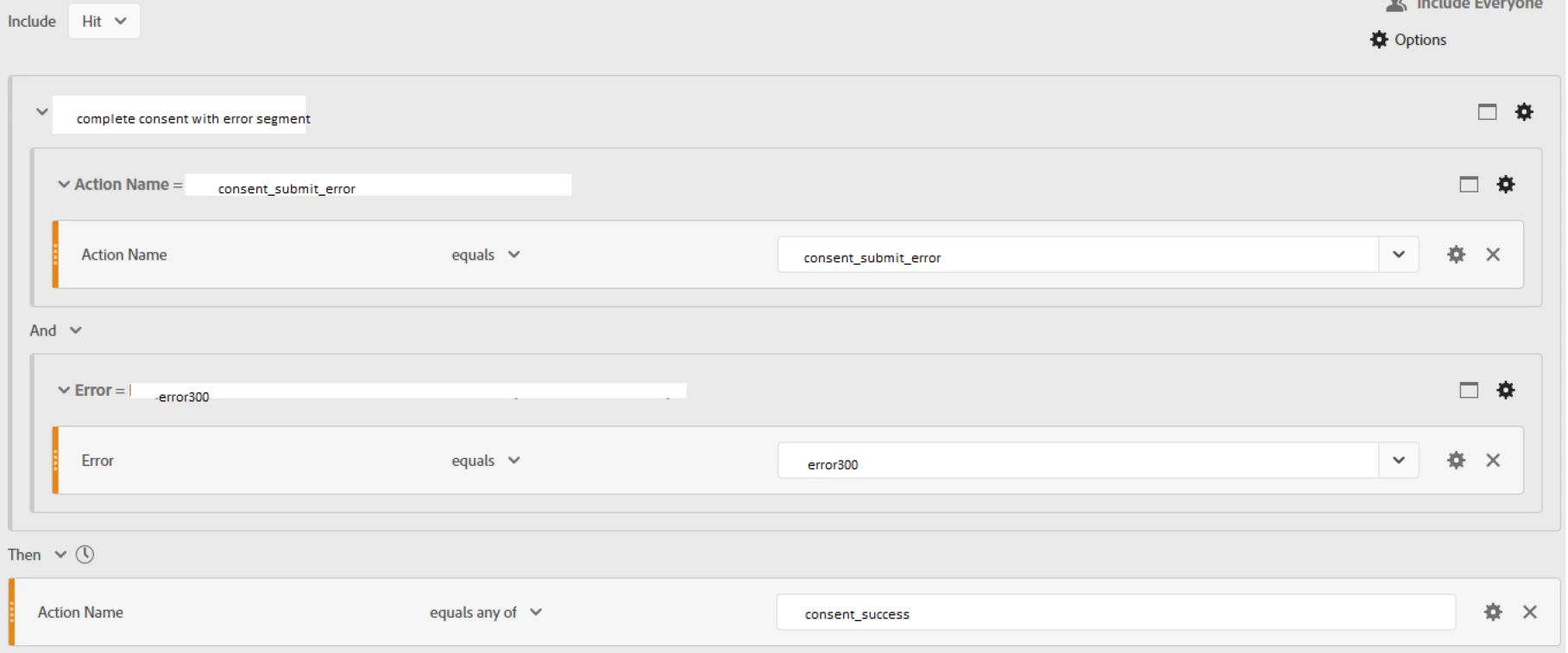 These errors are broadly categorised as by an evar called Evar1: consent_start_error and consent_submit_error. If there is no error then Evar1 takes the value of "consent_success".