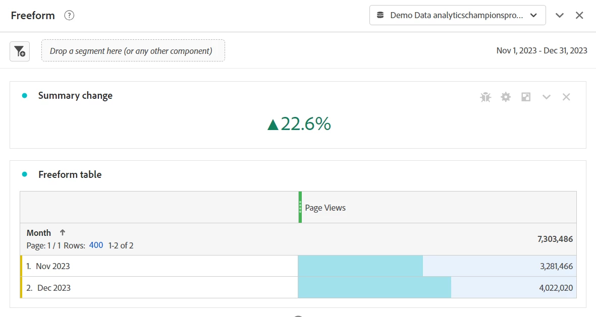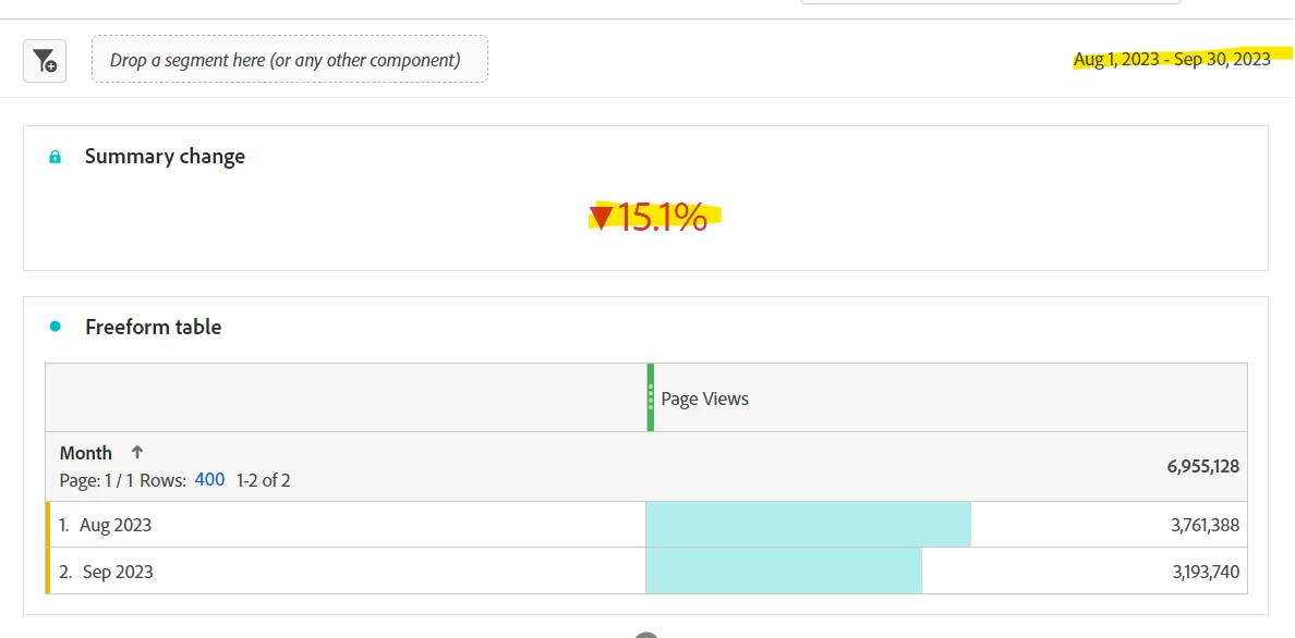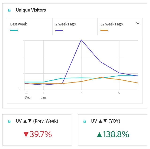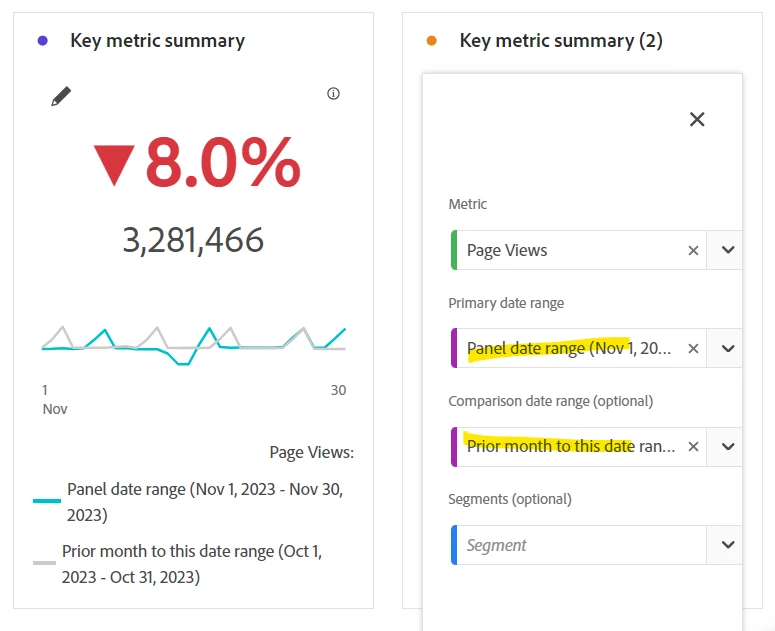 My understanding is that these display how a metric has change - so I can display how the site Visits metric has changed in, say, "Last month" compared to the month before - have I got that right?