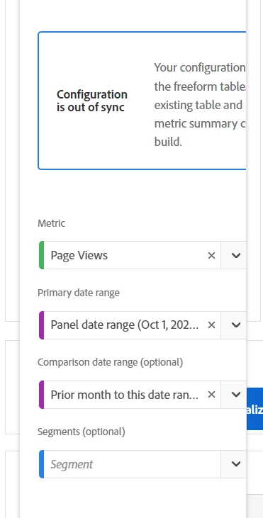 Your configuration is out of sync with the freeform table. To override your existing table and restore this key metric summary configuration, click build."