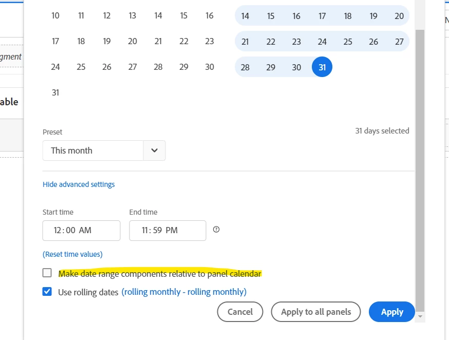 My issue is that if I change the reporting date range those comparisons break - if I click the little pencil icon on any of them, the dialogue tells me,