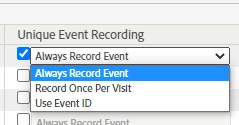 To "always" record the event, to record once per visit, or once per unique id passed. This is handy for tracking things like user registrations where you are afraid the user may refresh the page, or go backwards and trigger multiple times, or for things like purchases/subscriptions/etc that have a unique reference code)