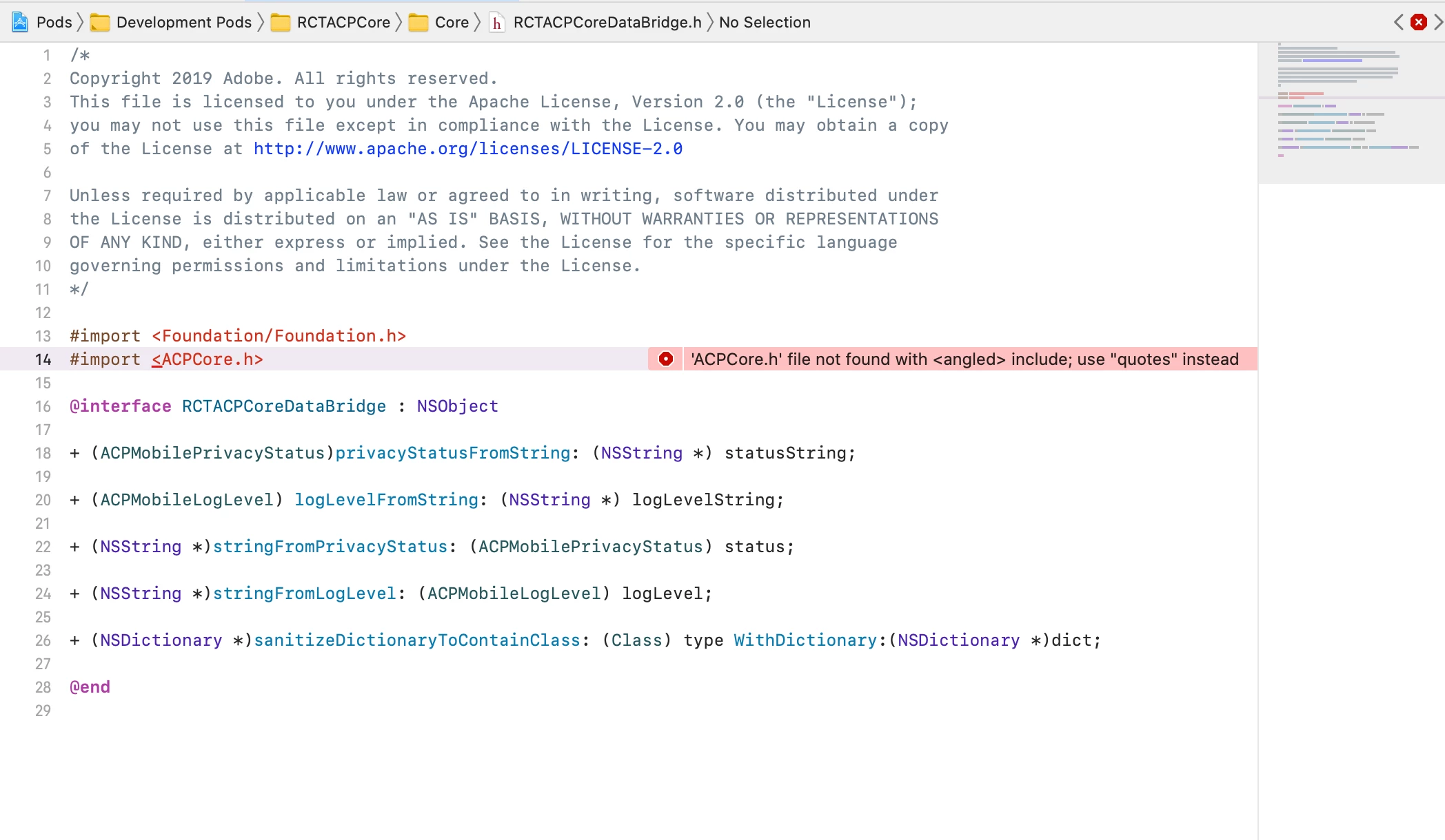 Need help from anyone to fix the below ACPCore library issue in iOS app.