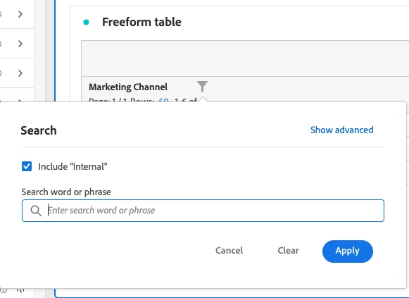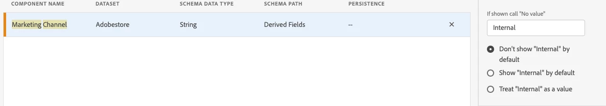 This setting treats "No Value" as a string value (except for numeric dimensions), allowing you to customize its representation as a dimension value. This customization affects both attribution and the "Include No value" option in the Freeform table search filter. Keep in mind that when you assign a custom string value, all matching values in your dataset will be consolidated under that same dimension string value.