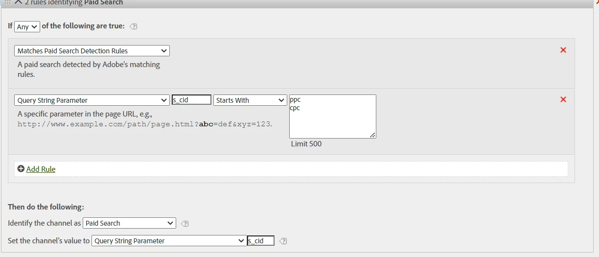 we have set up our CIDs so that if it starts with “cpc” or “ppc” it will be classified as paid search as below