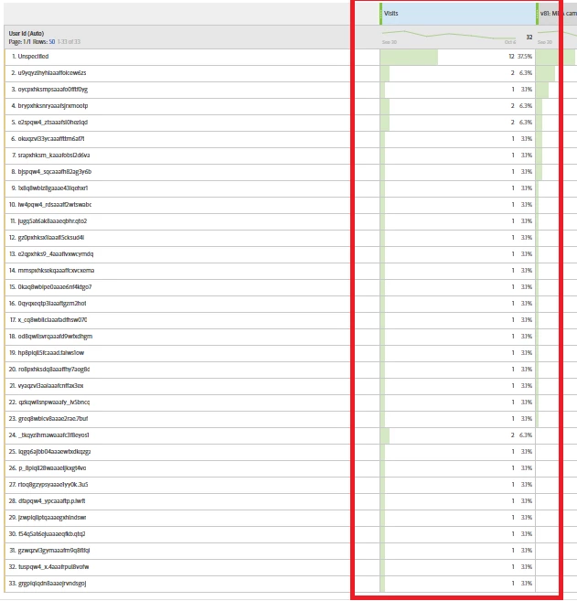 Why total visit count is not matching with sum of all individual visits count. for instance: As shown in the screen shot Total visit = 32. If we sum up visits made by individual user ID( each row's) is 48. I want to know why so much difference? Why Unspecified visits is not considered in the Total visits? Please share link where I can know more about this.