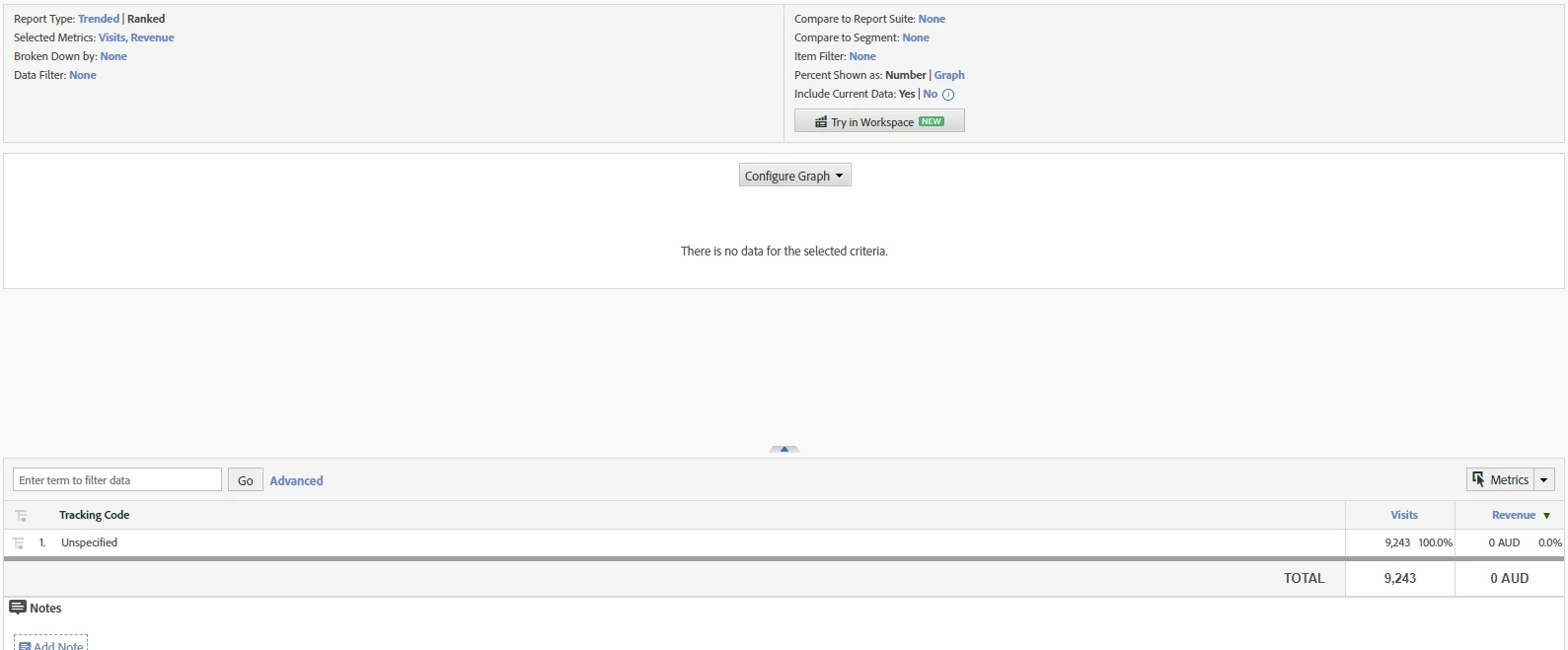 Yet my tracking code report still looks like this: