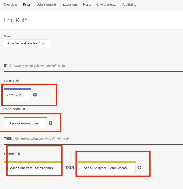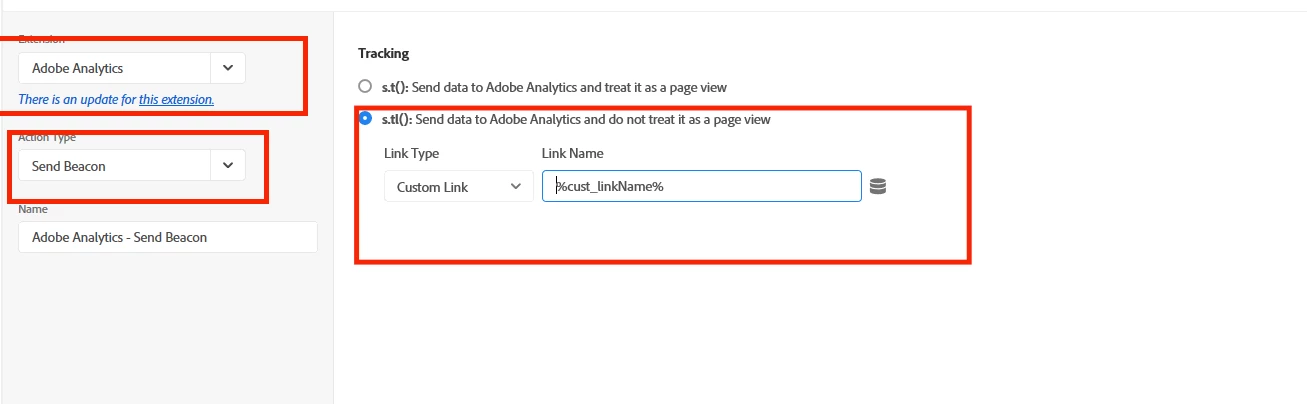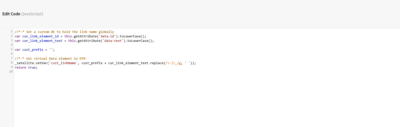 Then you can set up a custom code condition to create a virtual Data Element variable that holds your link name values when the beacon fires please see screenshots below