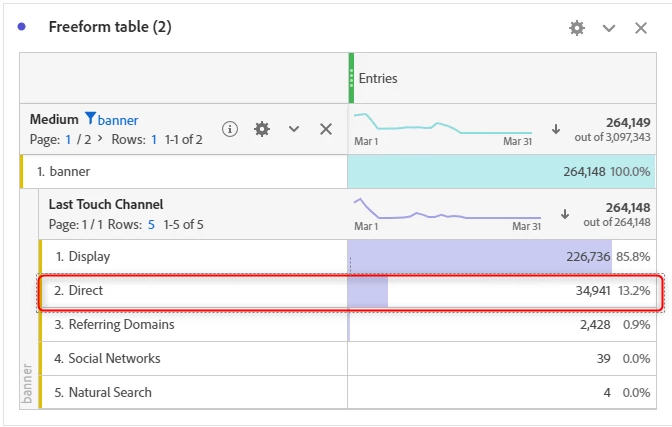 Traffic with medium "Banner" in Direct marketing channel