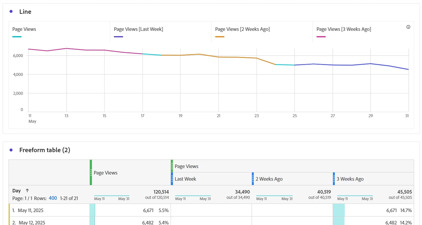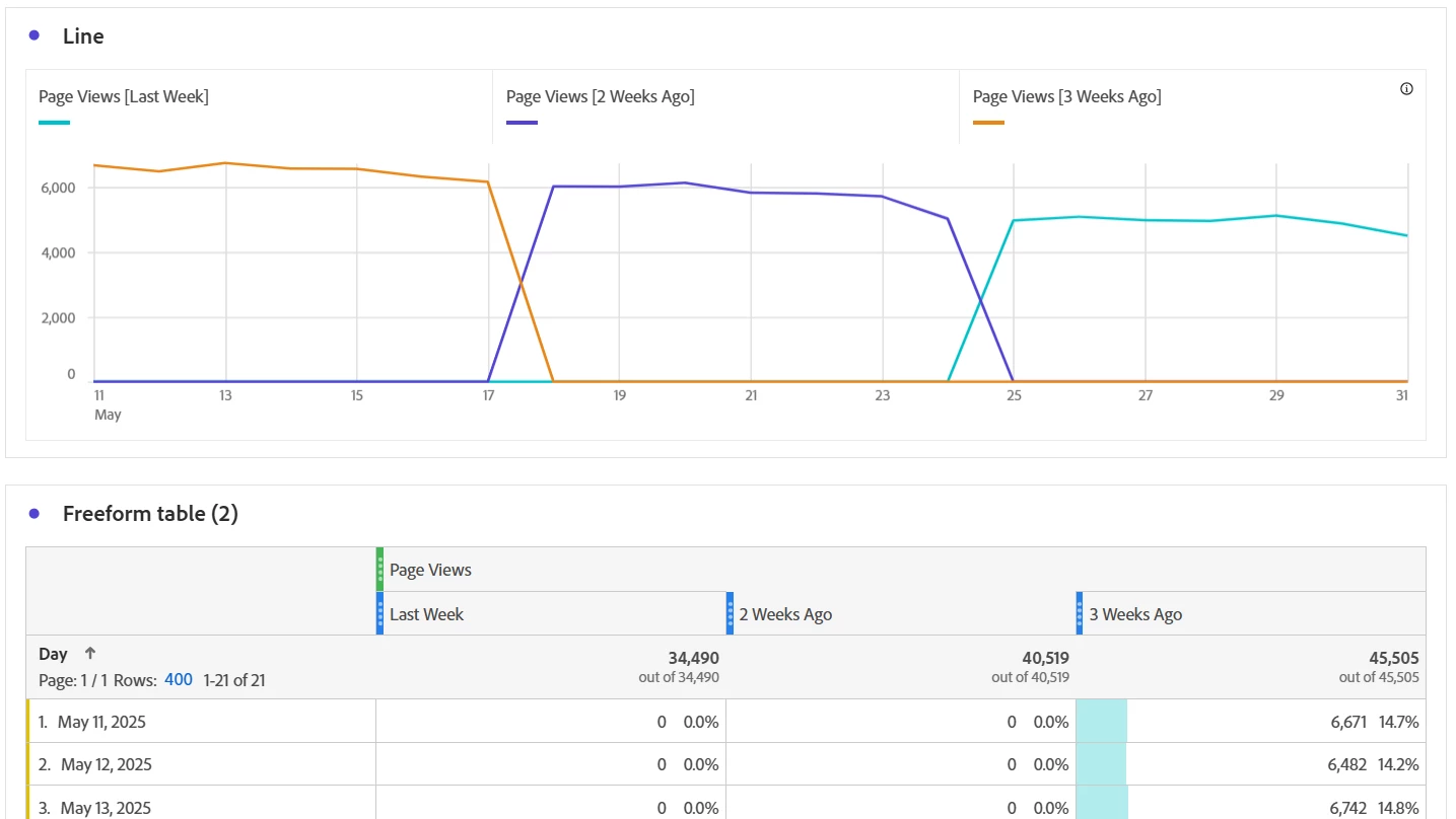 @sunilaad1 are the three components you're using custom date ranges that are all the same length but during different? When you create a line graph, it's going to start everything at the same point. So if you have three date ranges, for example, May, June, and July, they're all different months, but when you put them in the same graph, it will start them all at the same point. Same way that freeform tables work with trying to line up date ranges in different columns.