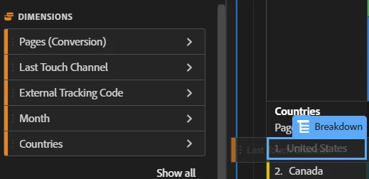 To further understand which channel you must prioritise for deep dive, you drag the last touch channel dimension under United States: