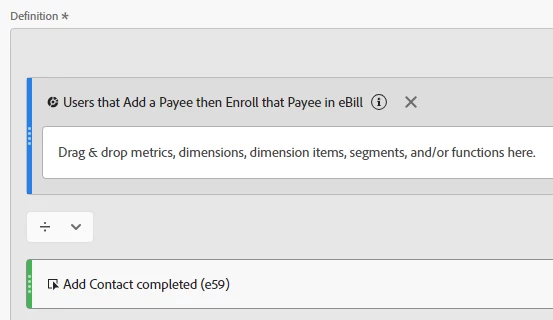 When I select it, it is acting a container and requesting a metric, dimension, segment, etc.