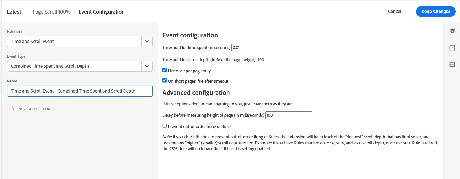 I like the idea of the 95% threshold as well... as @bjoern__koth is right, very few people will scroll 100% of the page (most people don't check the footer every time).