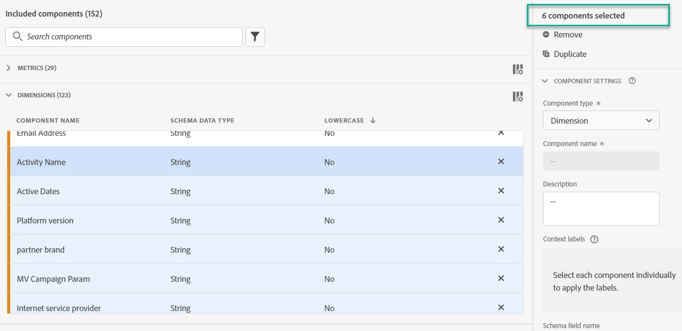 Some settings must be set individually, and you’ll notice these are not available in the settings section with multiple components selected. Settings may also not be available based upon components selected. For lowercase, all components selected should be strings. If any selected components are another data type, the lowercase option will not be available.