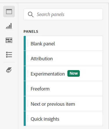 Once the experimentation dimensions have been set up, you’re ready to begin your project. In the panel section of the left rail, pull in the experimentation panel.