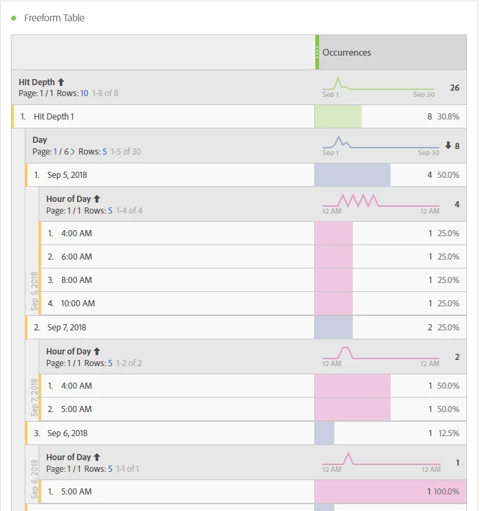 Here's what a report looks like when we try to Breakdown by evar8, with metrics from evar1 and evar2