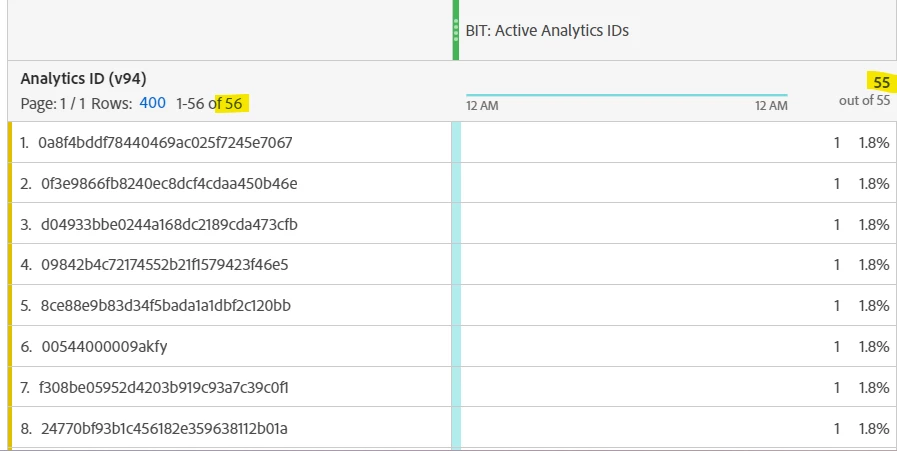 The above BIT:Active Analytics ID is calculated metrics, for each analytics ID we are getting value that is unique user. But in this case we, total value is not the correct data. When we download the report in excel, we are getting correct unique user data report but total is not showing correctly in the metrics.
