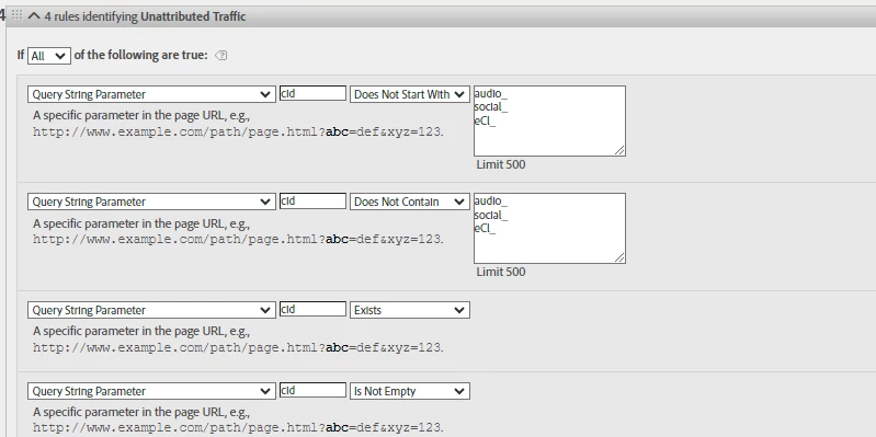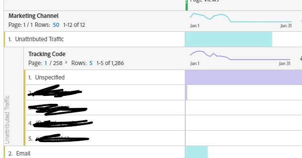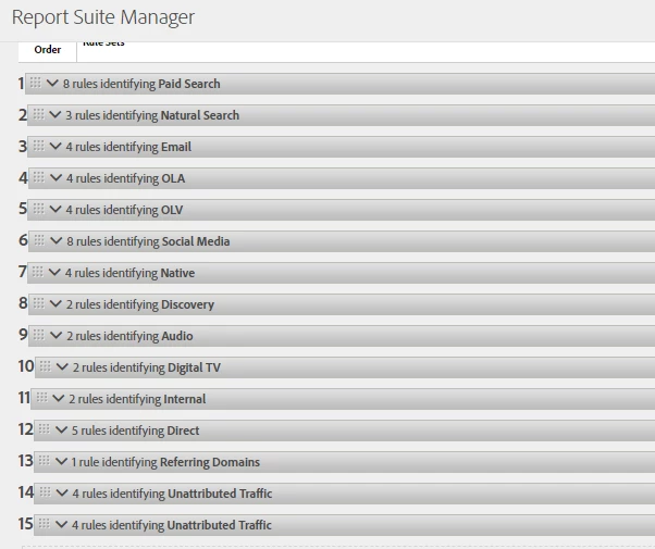 Long-time lurker, first-time poster to this community. I've seen similar questions to this one but they didn't quite answer the issue so just sharing some nuances to pinpoint the issue. We recently added 2 new marketing channels and processing rules to our global suite Marketing Channels, under our admin settings. After that, unrelated, our "other campaign/unattributed" channel started collecting tracking codes that were not a part of the rule set for that channel. We've been steadily adding to the ruleset for "other campaign/unattributed" to stop attribution to that channel but we're still seeing a ton of "unspecified" traffic so that it's our most visited source, according to reporting and I don't think that's right yet. Other campaigns/unattributed has never been our highest attributed channel. According to our rule set, unattributed/other campaigns should be last in the processing order, so I'm not sure why there is still so much traffic for "other campaigns/unattributed." Have also split the rules into two to hopefully clean it up more. Have included screenshots of some of the environment