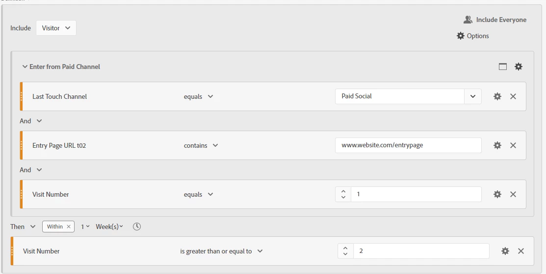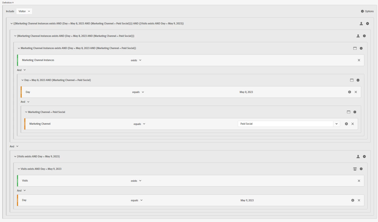 I am trying to figure out "how many users return to the site within a week after visiting it for the first time via a social media campaign." I have created a sequential segment, but I want to confirm if the segment is correct and also how to read the data based on different date ranges.